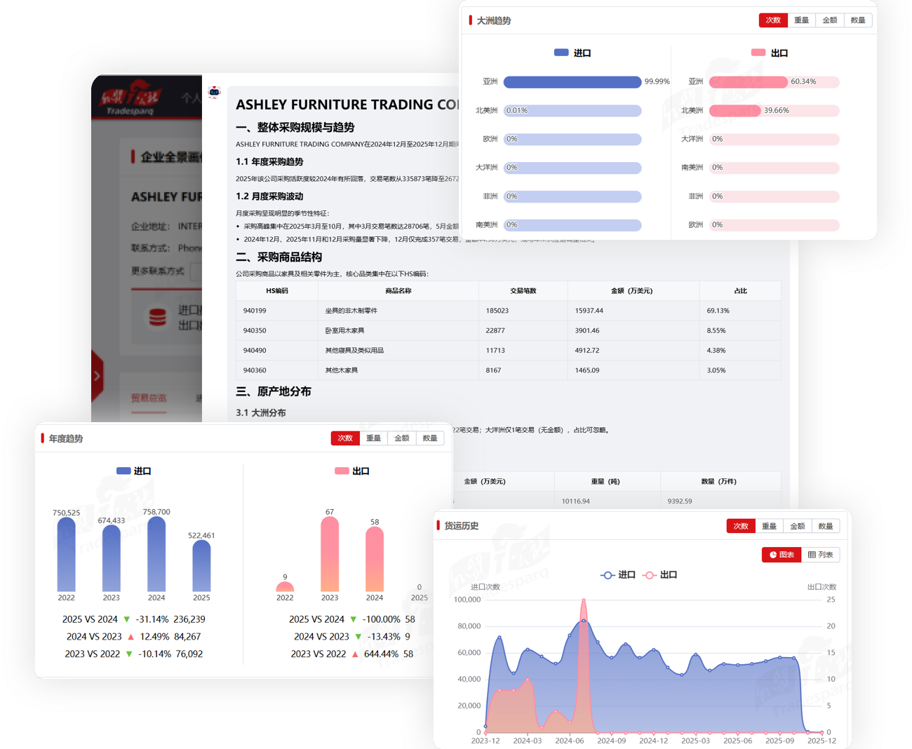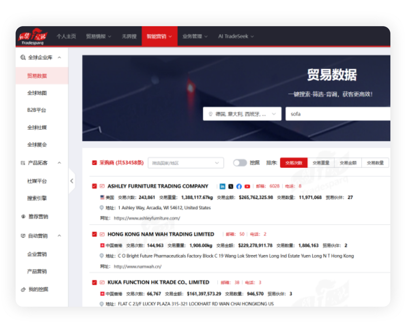 聚合企业贸易规模、供应链关系、信用状况、社媒影响力、地理位置于一张报告。