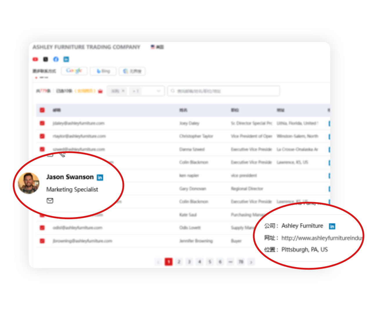 一键关联企业官网与LinkedIn等平台,AI精准定位采购负责人并获取联系方式。