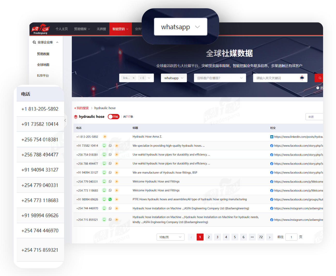 全球最活跃的七大社媒平台,突破搜索频率限制。WhatsApp高效触达,点击社媒链接加好友