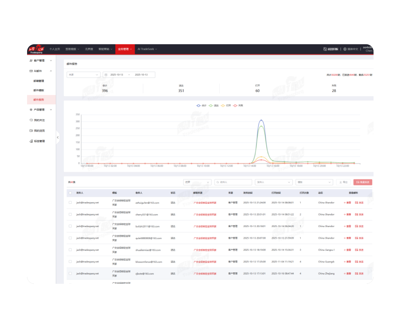 实时展示邮件打开率、客户反馈、线索转化等关键指标,支持可视化分析与持续优化。