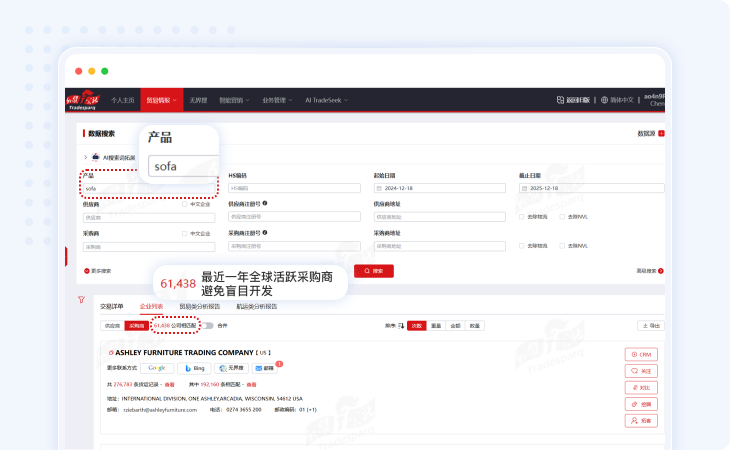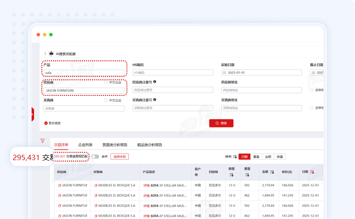 全球228个国家进出口交易数据,官方对接,一手数据源企业。覆盖全球233国家地区采购商情报,8500万家买卖双方官方商家信息,包含交易时间、价格、数量、国别、货描、HS编码等等。1.2亿采购商商业背景调查报告。